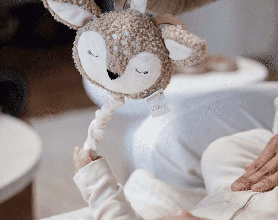רעשן טדי אייל- עשוי מבד טדי מפנק ונעים עבור הבייבי שלך, מנגן מנגינה קסומה לתינוק ומעניק רגעים מהנים וקסומים.