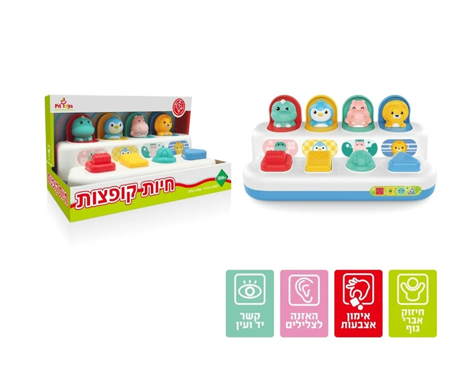 חיות קופצות של Pit Toys הוא לוח אינטראקטיבי שמפעיל את הסקרנות, המוטוריקה והחיוך - בכל לחיצה, סיבוב או דחיפה.