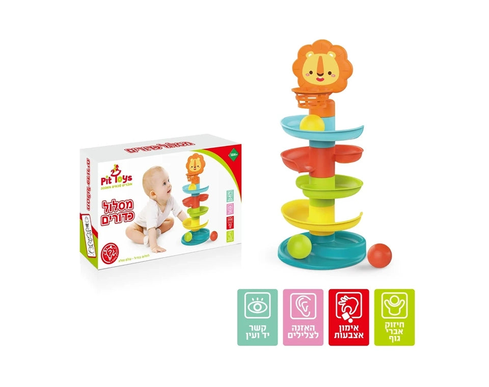 מסלול כדורים צבעוני עם גלישה סיבובית לפיתוח מוטוריקה וקשר עין יד.