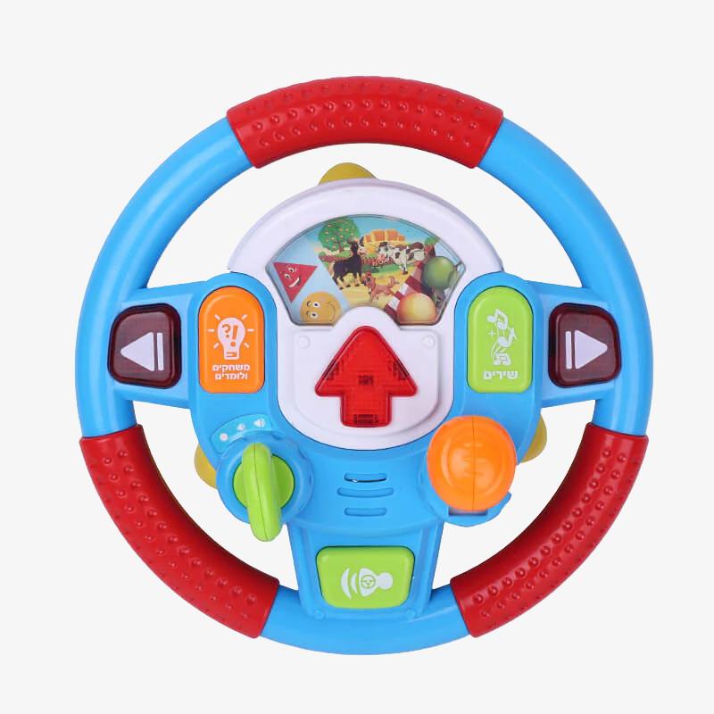 הגה מעוצב וצבעוני עשיר בתכנים ובהפעלות. כולל מגוון משפטים משעשעים וצלילים של מכונית, 5 שירים קלאסיים בעברית, 6 נושאי לימוד, אורות וצלילים ו2 עוצמות קול