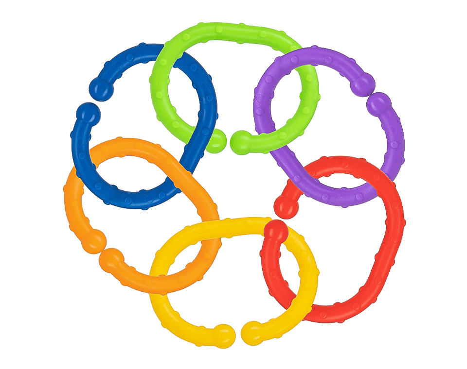 טבעות מתחברות הם צעצוע אידאלי לטיולים מהנים ומשחק, הטבעות מסייעות בפיתוח מוטוריקה עדינה, ניתן לחבר את הטבעות לעגלות, מוביילים ועוד. מכיל 18 יחידות של טבעות צבעוניות.