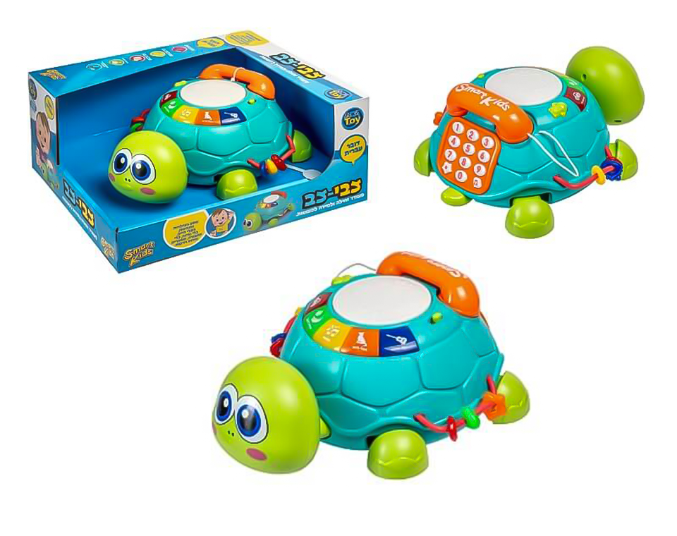 צבי הצב דובר עברית החבר הנחמד מעודד את הפעוטות לזחול, ללמוד