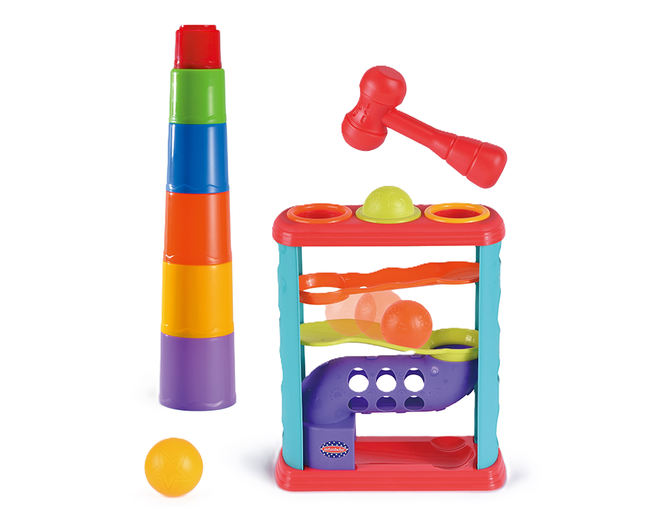 צעצוע שמעודד חושים, מוטוריקה וקשר עין-יד, כמו קשת פעילות, מזרן פעילות, משחקי קוביות ועוד.
