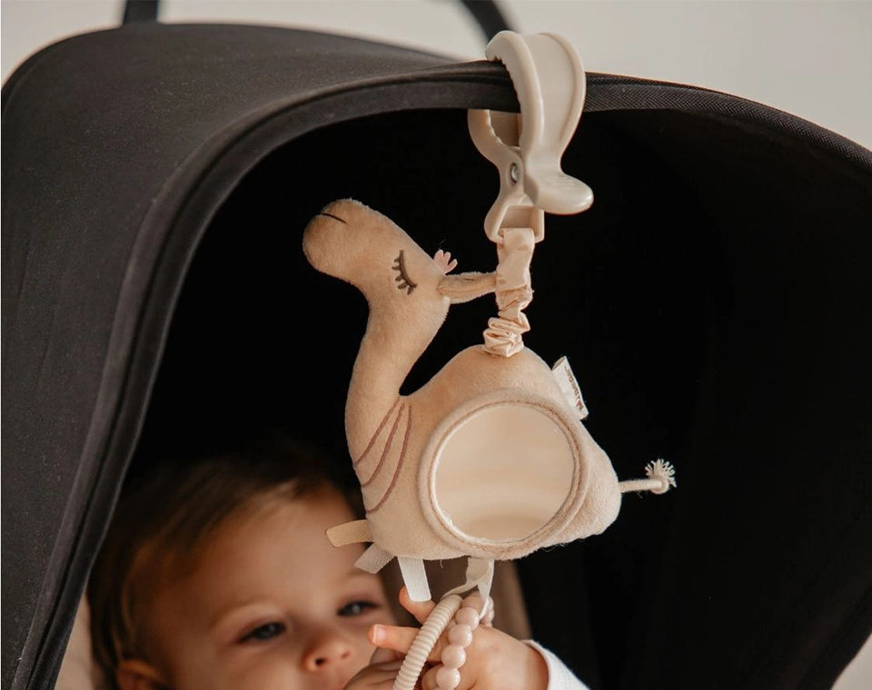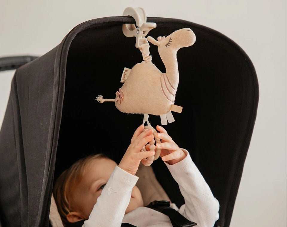 צעצוע טוב לעגלה צריך לשלב צבעים, מרקמים וצלילים לגירוי חושי. הוא צריך לעודד הושטת יד ותפיסה, לחזק קוורדינציה, לשמור על סקרנות ועניין בזמן הנסיעה.