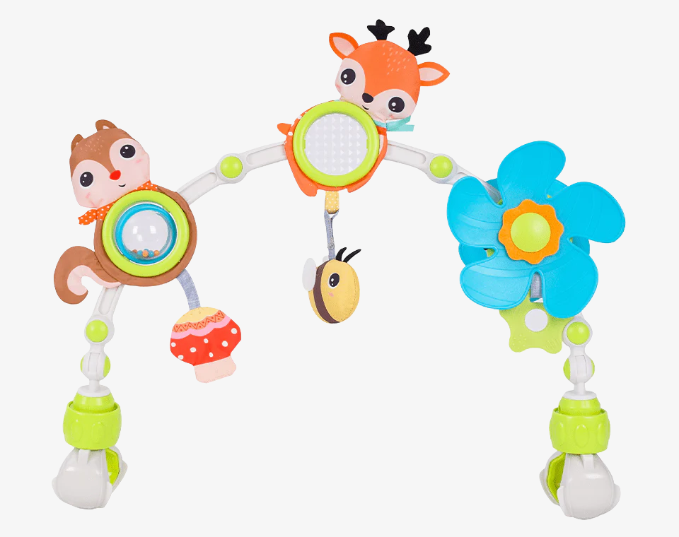 צעצוע טוב לעגלה צריך לשלב צבעים, מרקמים וצלילים לגירוי חושי. הוא צריך לעודד הושטת יד ותפיסה, לחזק קוורדינציה, לשמור על סקרנות ועניין בזמן הנסיעה.