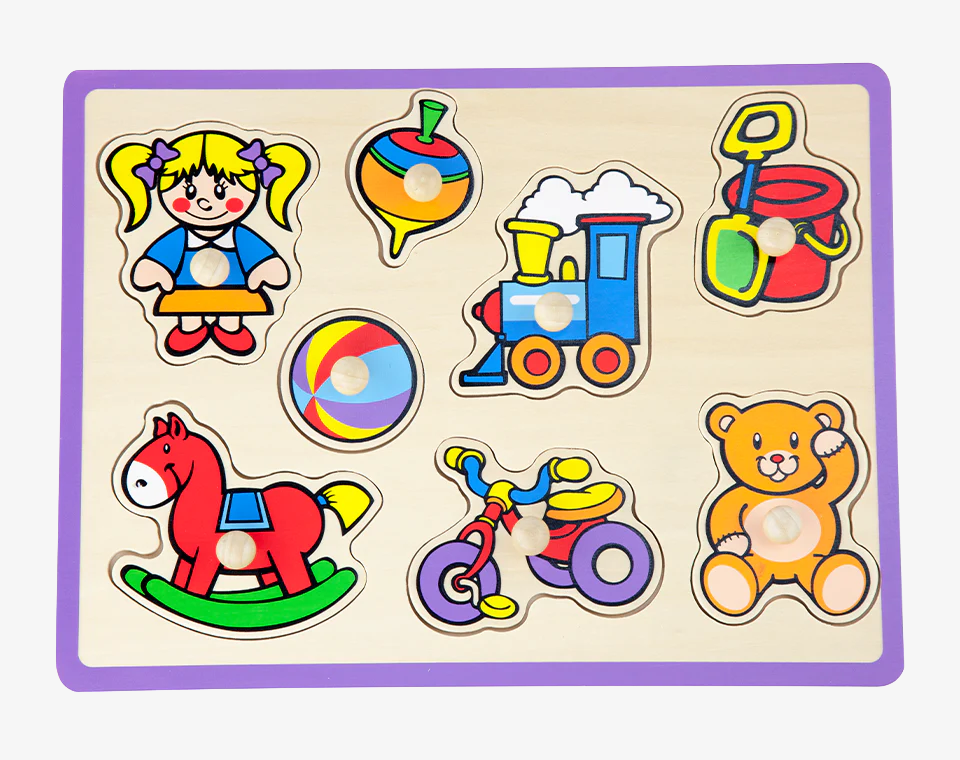 פאזל כפתורי עץ מבית VIGA, צבוע בעבודת יד ובעל כפתורי עץ כדי להקל על הילדים לתפוס את הלוחות ולהתאימם למקומם הנכון