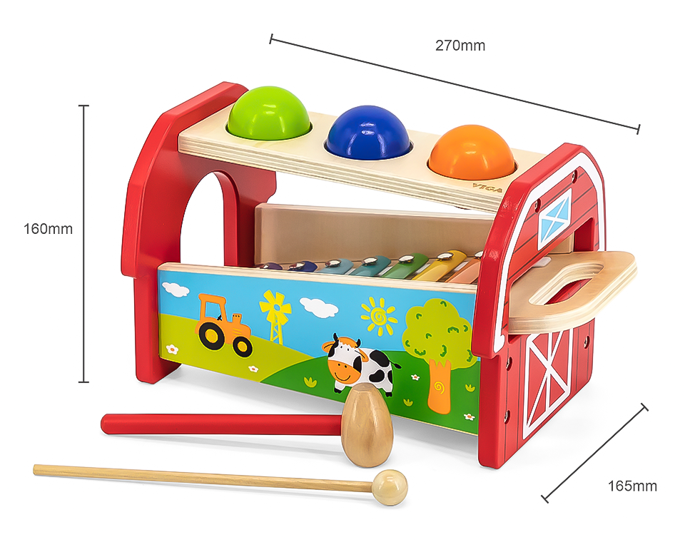 קסילופון משולב עם משחק הך פטיש מעץ מלא מבית VIGA