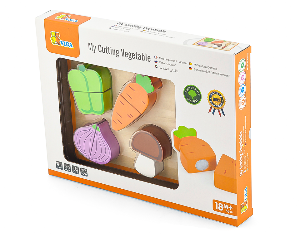 סט לחיתוך ירקות מעץ מלא ואיכותי מבית ויגה, סט הכולל 4 ירקות מעץ עם אפשרות חיתוך וסכין.