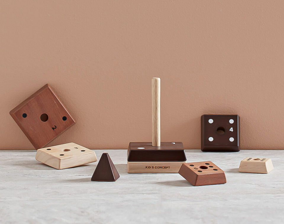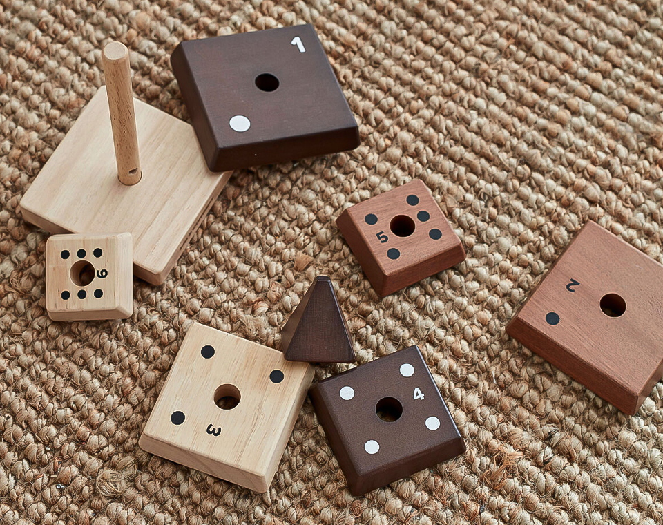 מגדל פירמידה עם קוביות עץ לכל שכבה של הערימה יש מספר מתאים בצורה של נקודות ודמות.