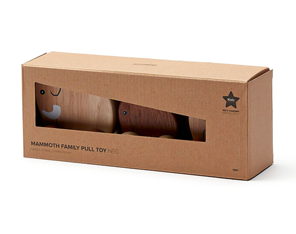 הצעצוע של משפחת ה- Mammoth עשוי משני סוגים של עץ, טבעי בהיר וכהה ומטופל בלכה על בסיס מים.