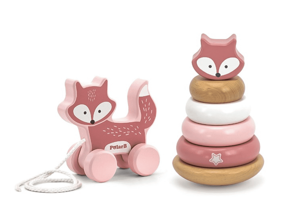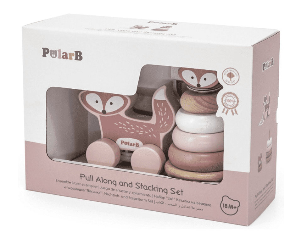 סט משיכה ומגדל טבעות מבית PolarB, הסט כולל מגדל טבעות מעץ וצעצוע משיכה, מעולה לפיתוח המיומנויות של הקטנצ'יק שלך