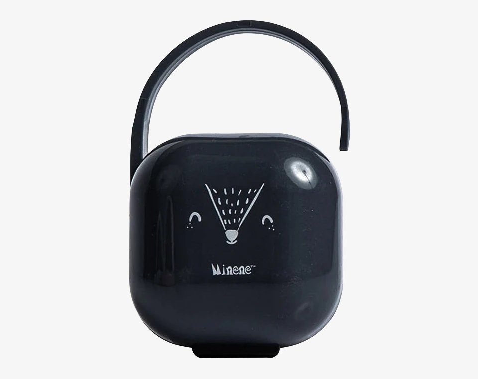 קופסת פלסטיק מאוירת למוצץ עם ידית לתלייה נוחה על עגלת התינוק או תיק ההחתלה.