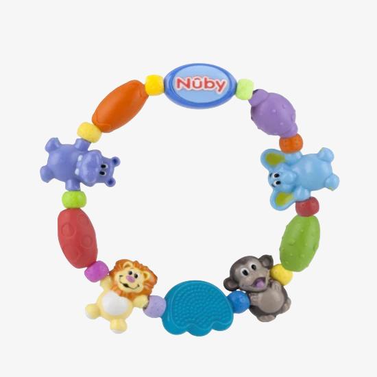 נשכן שרשרת חרוזים צבעוני מבית המותג נובי, המעוצב במיוחד על מנת לסייע בתהליך של בקיעת השיניים. הנשכן מספק משטחים בעלי מרקם, ודמויות של חיות חמודות. הצורות הצבעוניות אטרקטיביות וקלות לאחיזה.