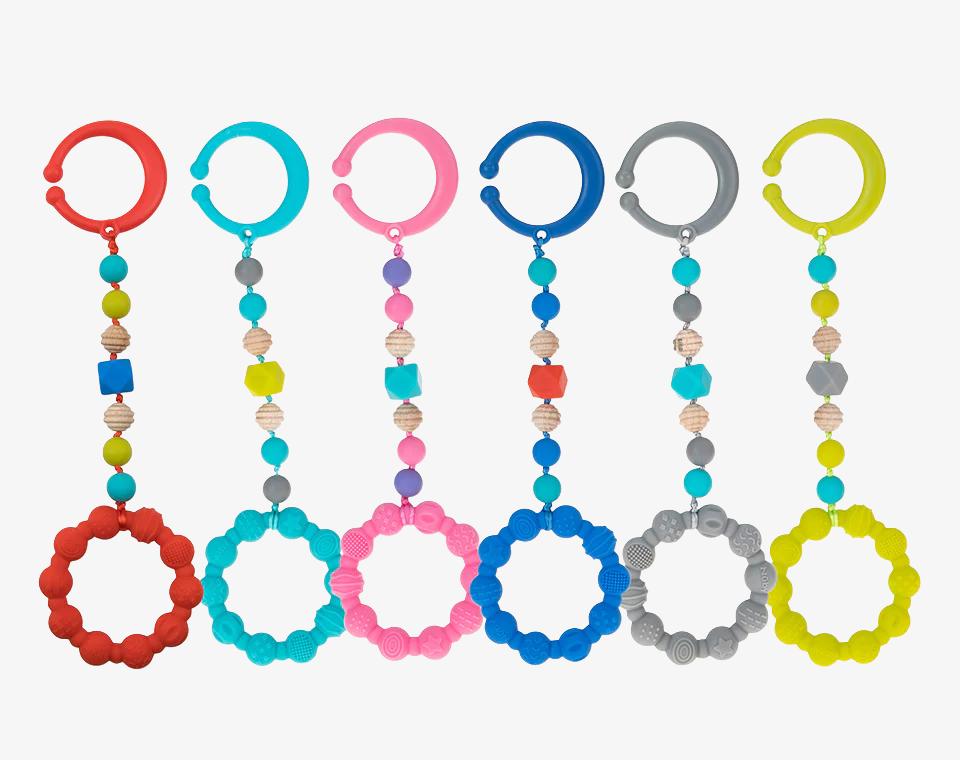 נשכן שרשרת לעגלה מבית נובי בעל סיליקון רך אשר מרגיע את החניכיים ומקל על התינוק בזמן בקיעת השיניים. הנשכן מגיע בצבעים בהירים המעוררים את החושים והוא בעל משטחי ומרקמי נשיכה מרובים. הנשכן עשוי מחרוזי סיליקון רכים והוא נתלה בקלות על העגלה או כיסא הבטיחות.