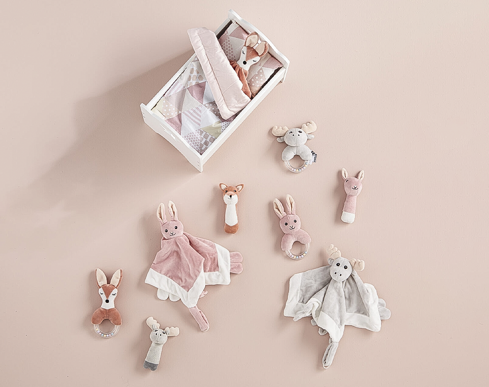 רעשן טבעת מקסים בצורת אייל מקולקציית EDVIN. האייל רך למגע ונוח לאחיזה