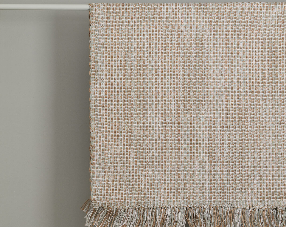 שטיח יוטה וכותנה עם פרנזים, נעשה בעבודת יד.