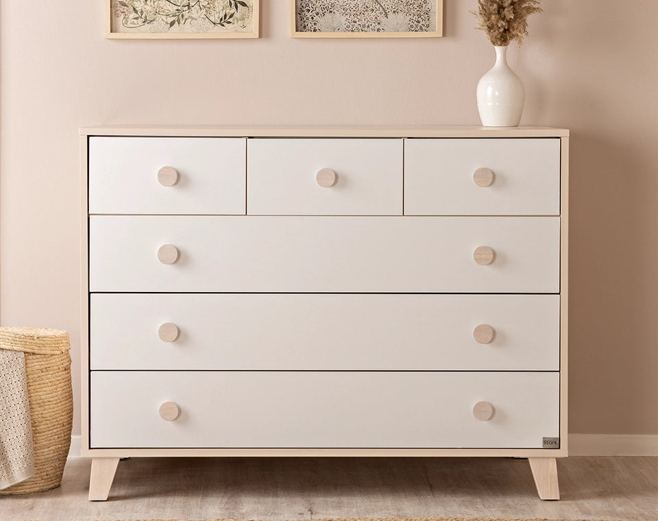 שידת ניאו בעיצוב מודרני ונקי עם טאץ' טבעי, זמינה ב־6 גוונים לבחירה. השידה ברוחב 120 ס"מ, בעיצוב נייטרלי, מודרני ומינימליסטי, עם ידיות עץ המוסיפות מראה חמים ומושלם.