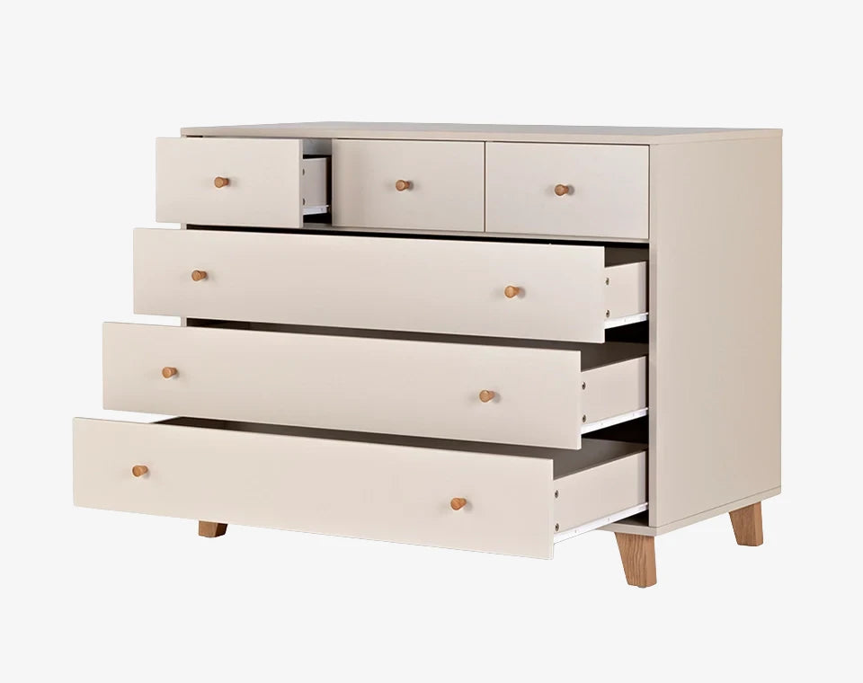 שידת ניאו בעיצוב מודרני ונקי עם טאץ' טבעי, זמינה ב־6 גוונים לבחירה. השידה ברוחב 120 ס"מ, בעיצוב נייטרלי, מודרני ומינימליסטי, עם ידיות עץ המוסיפות מראה חמים ומושלם.