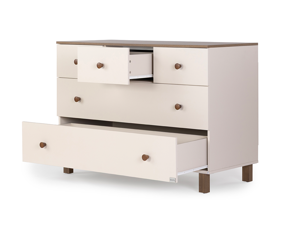 השידה עשויה MDF איכותי ועמיד במיוחד, ומחוזקת במוט פלדה פנימי – לניצול מיטבי של המגירות ולשימוש ארוך טווח גם מעבר לשנות הפעוטות. בזכות העיצוב הקלאסי והניטרלי, השידה משתלבת בקלות בכל סגנון של חדר תינוקות או חדר ילדים.