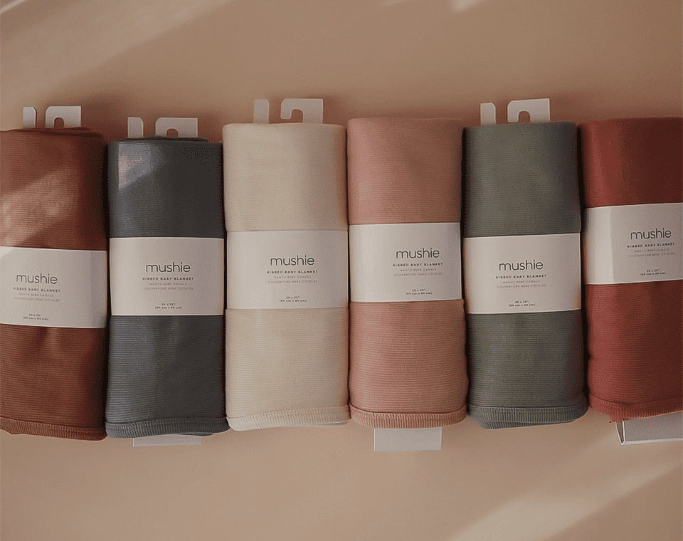 שמיכת התינוק של Mushie מבד ריב עשויה מכותנה אורגנית, מושלמת לרגעים הראשונים עם התינוק ורב-תכליתית לשנים הבאות