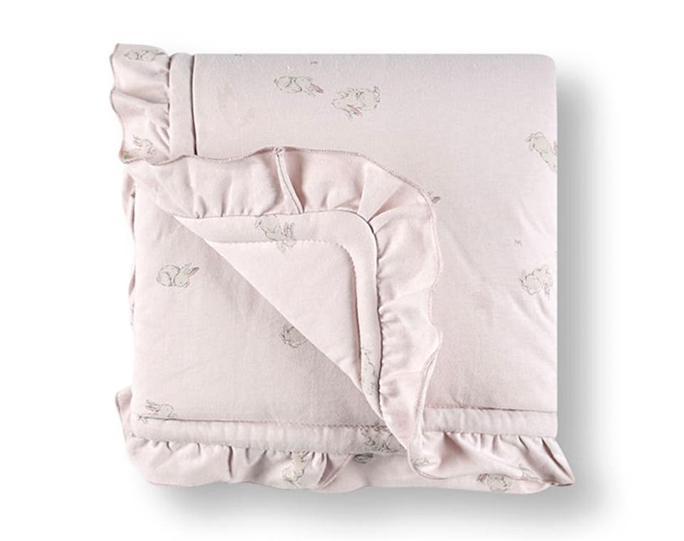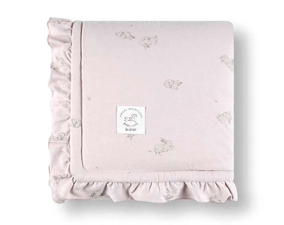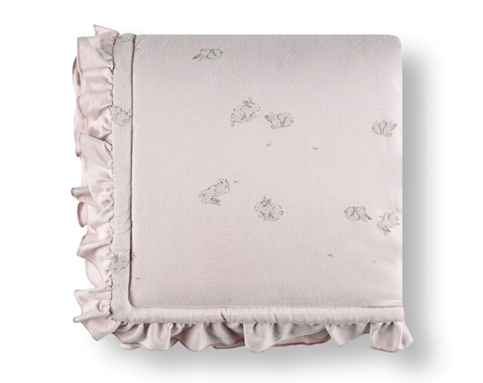 - שמיכת חורף עבה עם מילוי שמתאימה לשימוש בעריסה ועגלת תינוק, מגיע עם דיטייל של מלמלה בסגנון ויטאג'י בדגם הארנבונים וסוסי העץ.