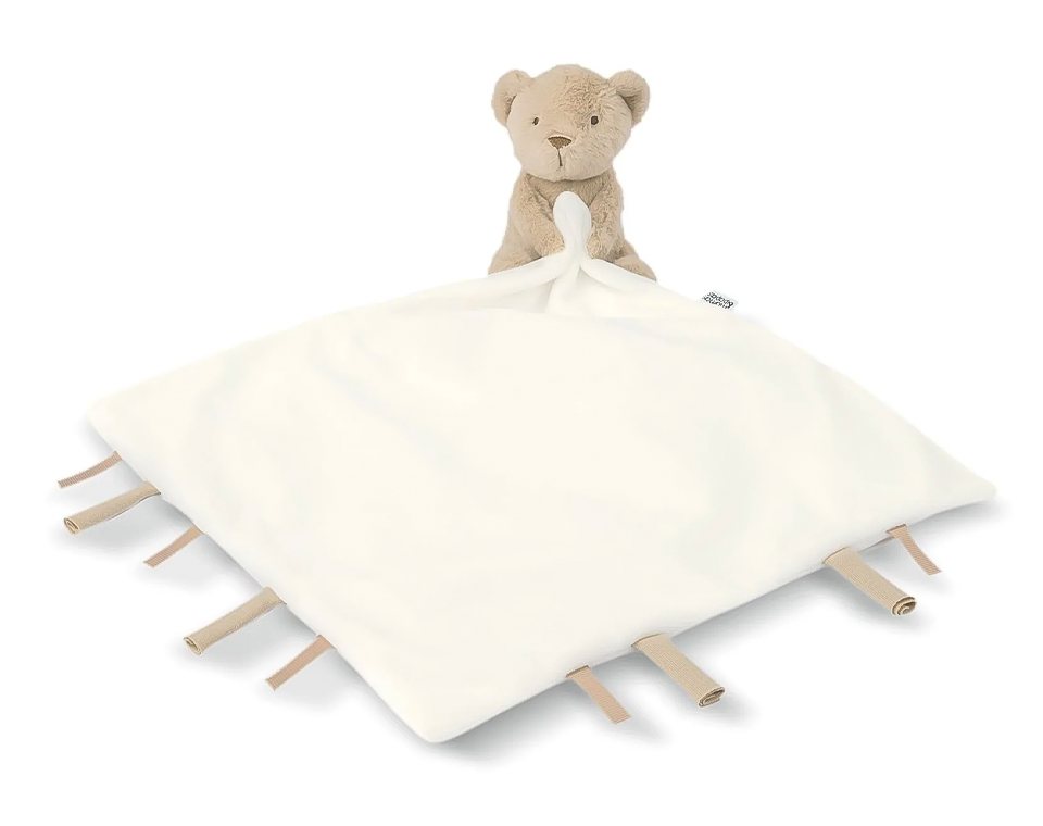 השמיכי המושלם שלנו ילווה את תינוקך מהיום הראשון, הדוב הקטן עשוי מפרווה מלאכותית רכה במיוחד, אוחז בשמיכי רך מכותנת ג’רסי וסרטים מסביב לקצה
