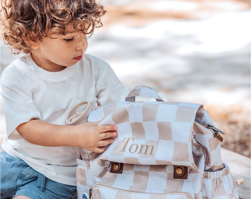 תיק ילדים אופנתי בעיצוב רטרו שעוצב בהשראת תיקי בית הספר הקלאסיים של פעם.