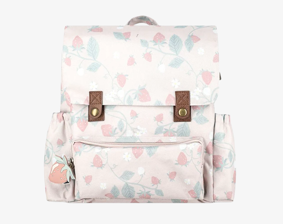 תיק גן רטרו- ורוד מודפס תותים OS