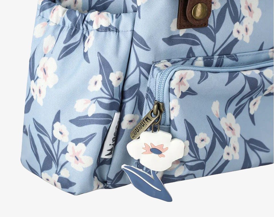 תיק גן רטרו- תכלת מודפס פרחים OS