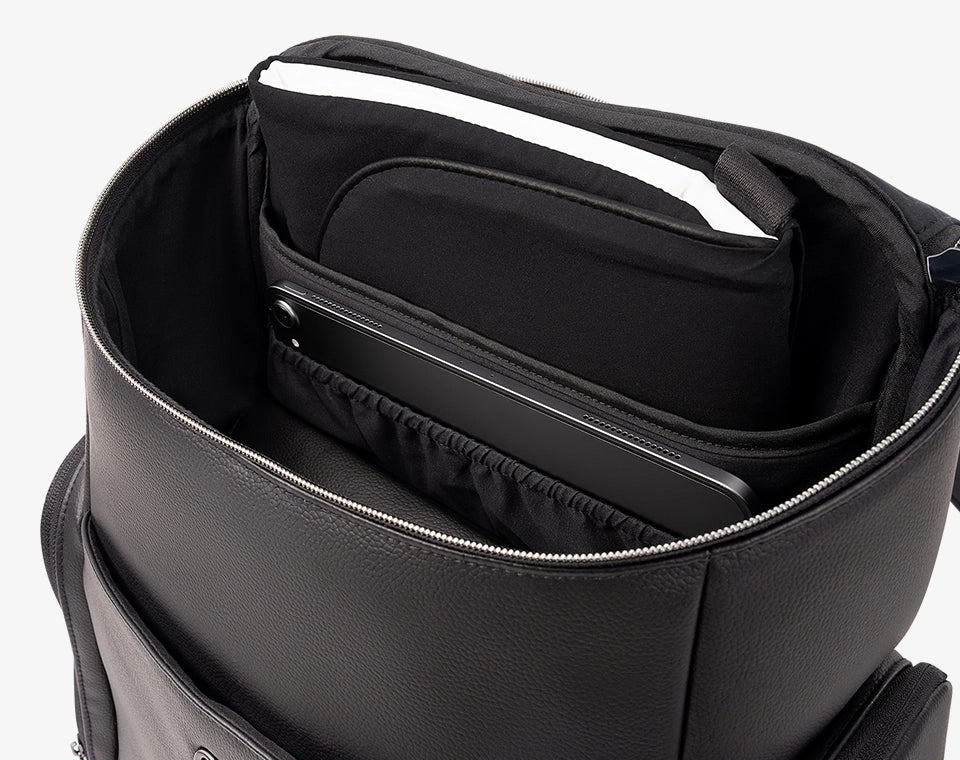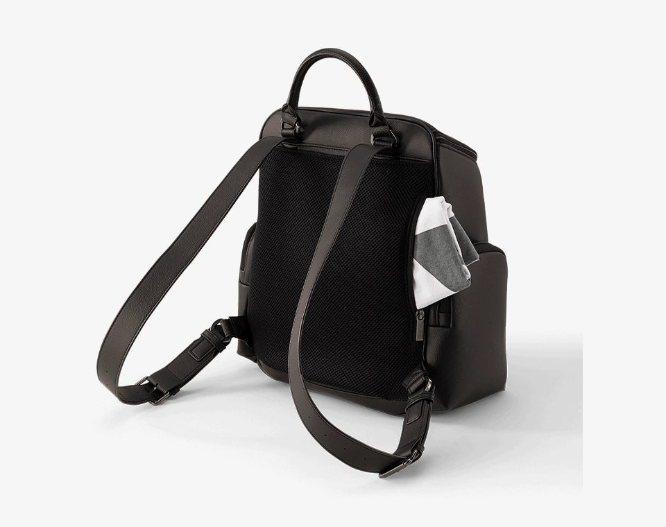 תיק החתלה בעיצוב עור יוקרתי שמביא איתו נוחות, פונקציונליות ואלגנטיות בכל יציאה. מתאים גם כתיק גב וגם לנסיעות, עם תאים חיצוניים ופנימיים חכמים, תא ייעודי למחשב נייד, נרתיק החתלה נשלף וחיבור למזוודה. מושלם להורים שלא מתפשרים- לא על הסטייל ולא על הנוחות.