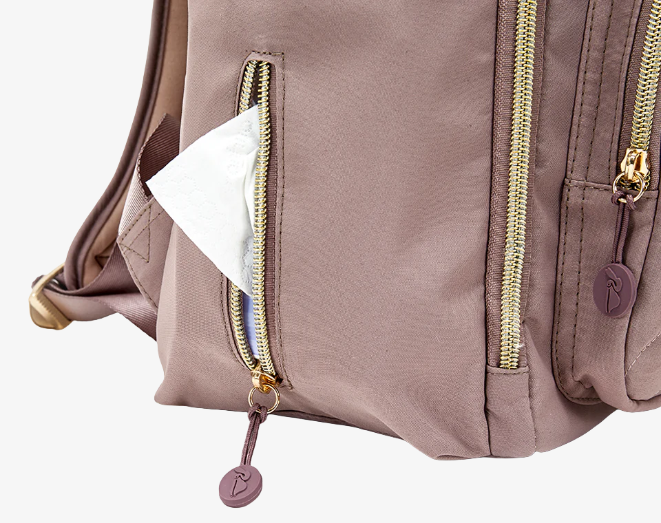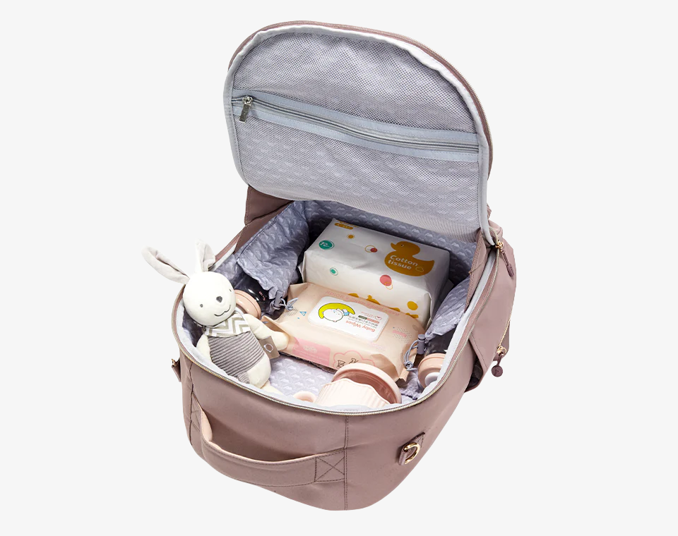 - כאשר כיס מבודד לבקבוק בצד אחד של התיק, לשמירה על טמפרטורת הבקבוק, וכיס PEVA בצד השני (חומר עמיד למים ונוח לניקוי) .