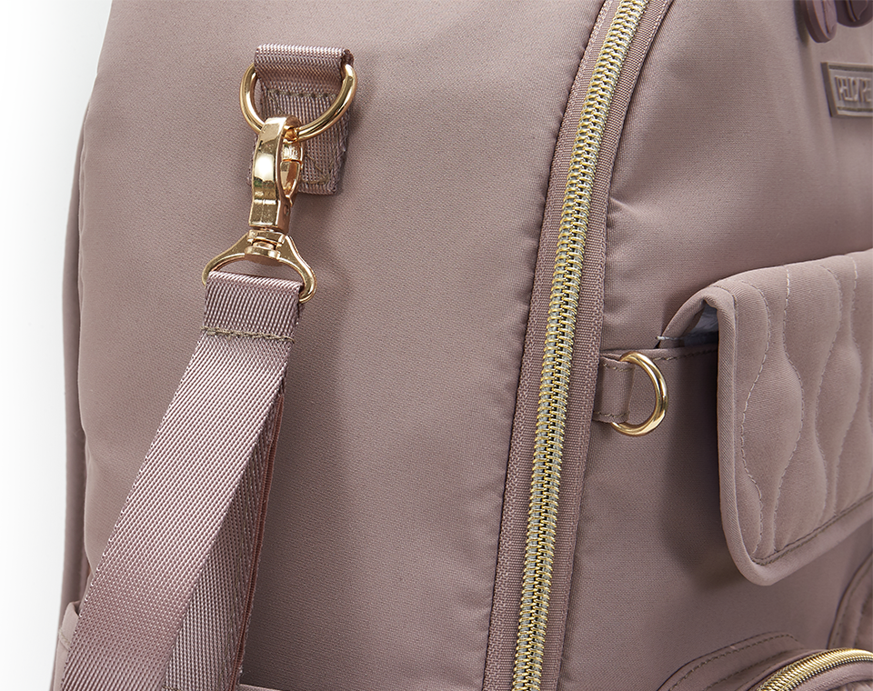 - תיק החתלה גב, בעל 6 תאים חיצוניים, תא רשת פנימי, תא למחשב נייד ו-2 כיסים פנימיים לבקבוקים.