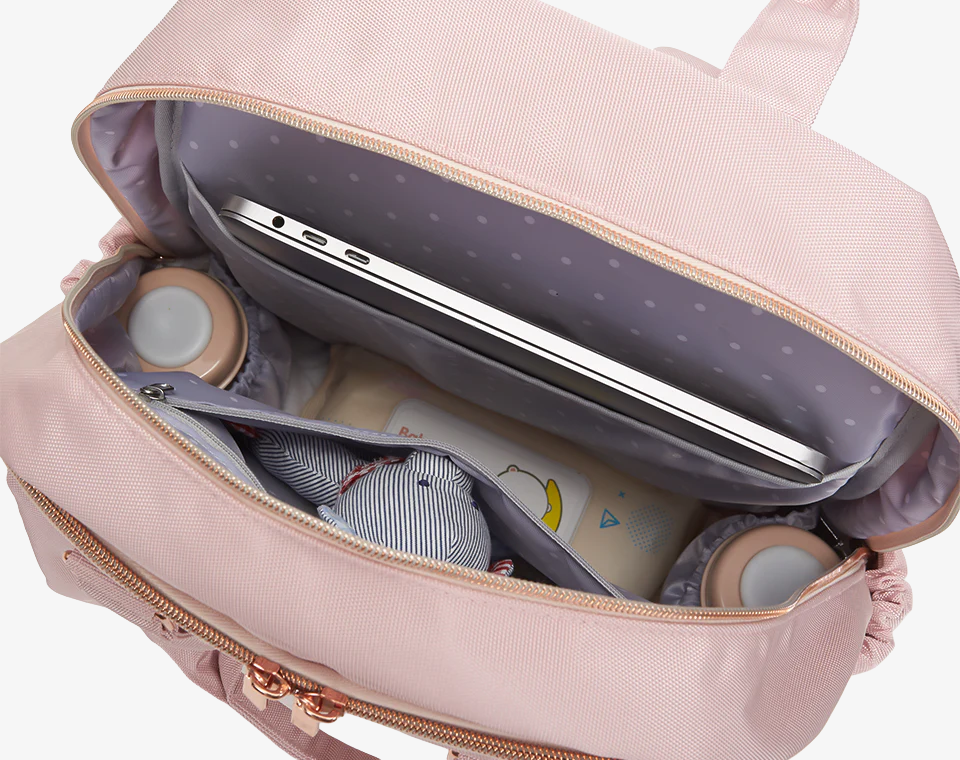 - תיק החתלה בעל 7 תאים חיצוניים ו-3 תאים פנימיים, תא למחשב נייד ו-2 כיסים פנימיים לבקבוקים.