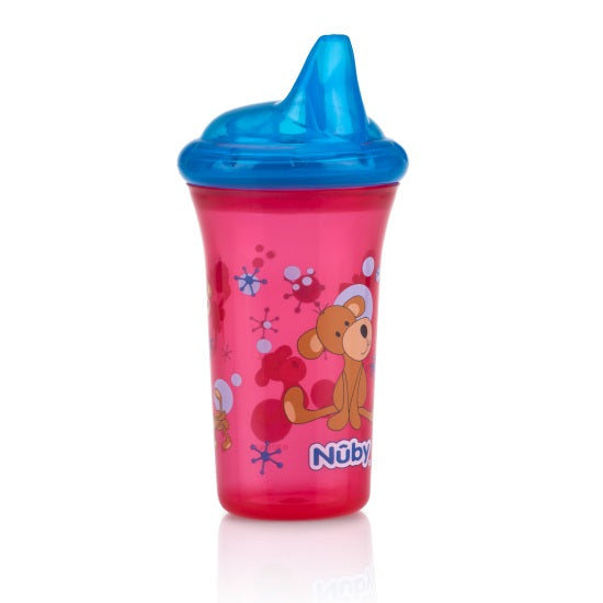 כוס עם מכסה עשויה מפלסטיק עמיד, בעלת שסתום מווסת זרימה המתוכנן למנוע נזילות או טפטופים. עוזרת בלימוד מעבר קל לשתיה בכוס.