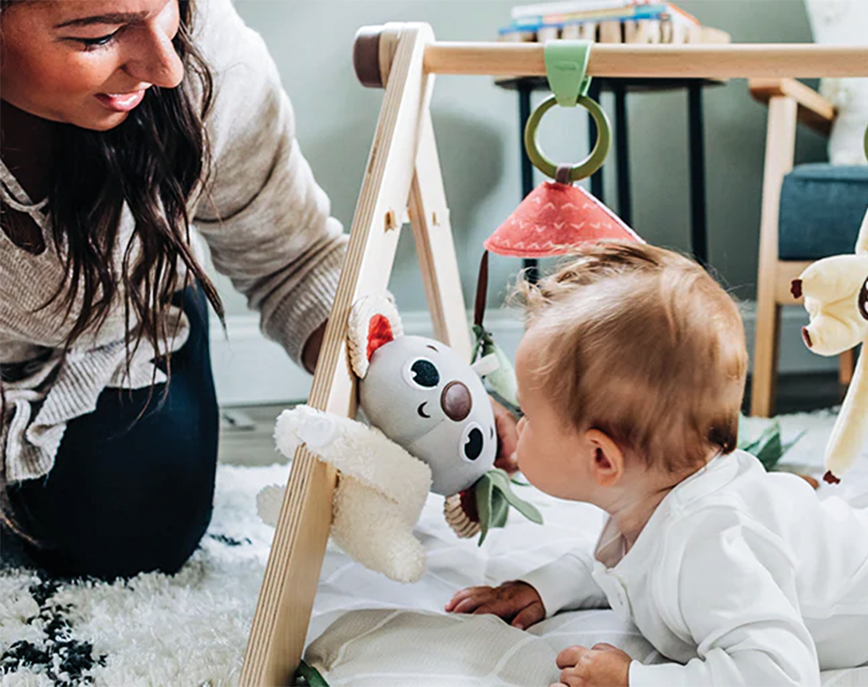 כבר מגיל לידה – כשהתינוק שוכב על הגב וצופה בצעצועים.