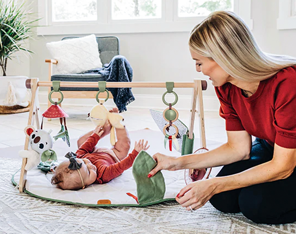 כן, אפשר להניח את התינוק על הבטן ולהציב צעצועים נמוכים מלפניו.