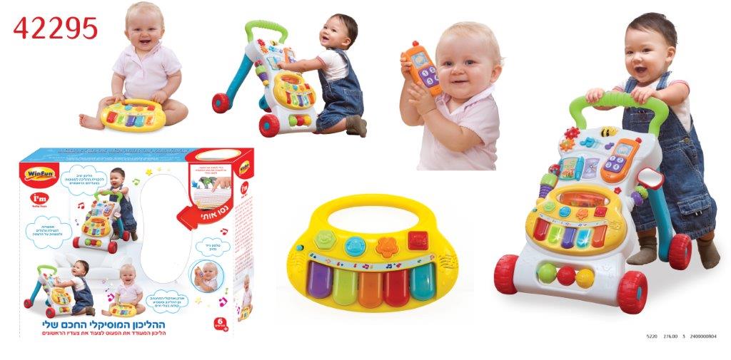 הליכון מוזיקלי מהנה המסייע לפעוטות לעמוד וללכת. כולל תכונות אינראקטיביות כגון: קלידי פסנתר, טלפון, כפתורים, ורעשן. ההליכון גם מנגן מנגינות וקולות של חיות.