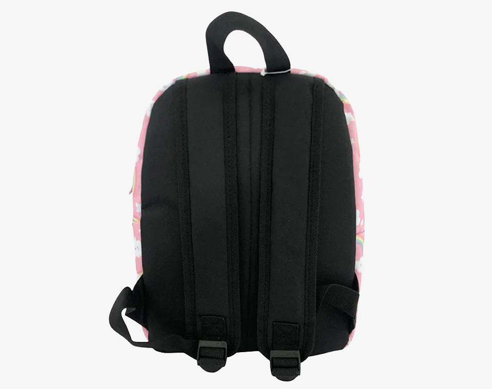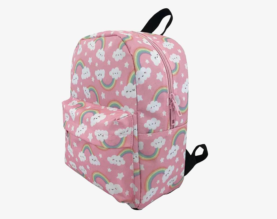 תיק לגן מושלם בצבע ורוד עם איורים של קשת בענן