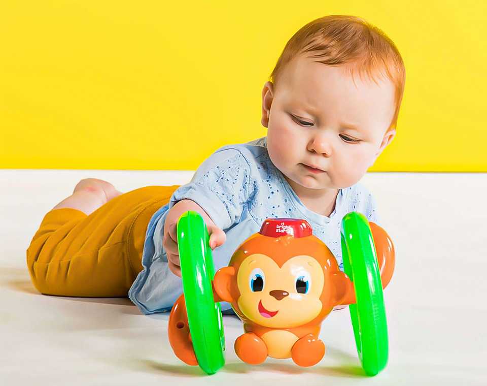 הקוף האורקולי של ברייטס טארטס מתגלגל מסביב לחדר עם גלגלים מאירים, מנגינות מתחלפות ומגוון צלילים משעשעים. כפתור לחצן במרכז כובע הקוף מפעיל את מגוון האטרקציות המהנות של המשחק, התינוק יכול להשיג את הקוף, לאחוז בו, ליהנות מביצועי “סלטות מרשימות” באוויר ולשוב ולגלגל אותו בשנית עם מוסיקה וצלילים משעשעים חדשים. הקוף האורקולי יעודד את התינוק לזחול אחריו ויעניק לך ולתינוקך הרבה רגעי אושר וצחוק