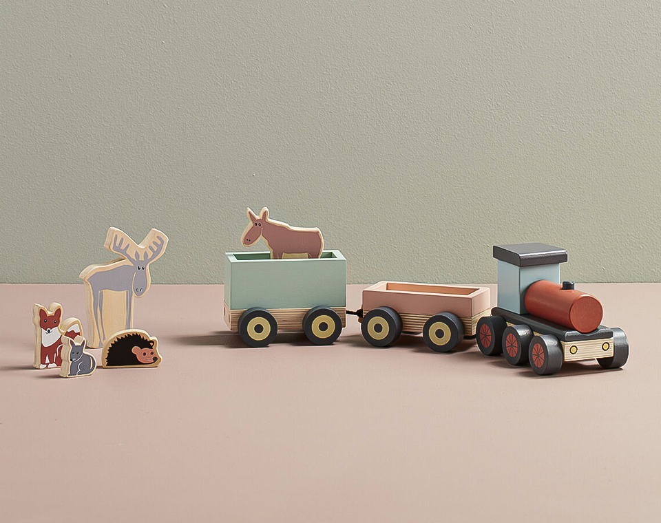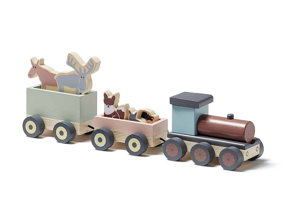 כולל חמישה דמויות שונות של בעלי חיים שניתן להסיע ברכבת ממקום למקום.