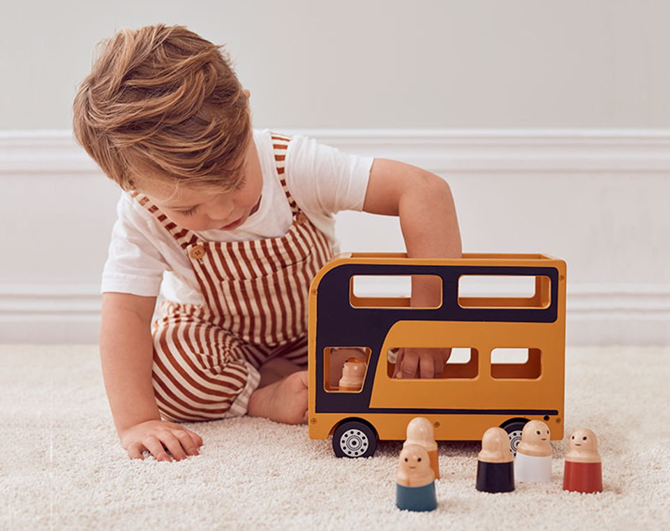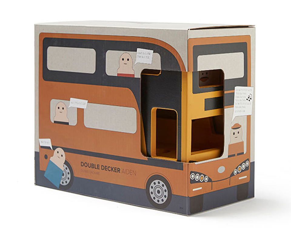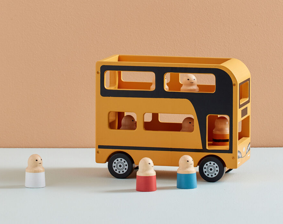 אוטובוס קומותיים מעץ, עם שבעה נוסעים.