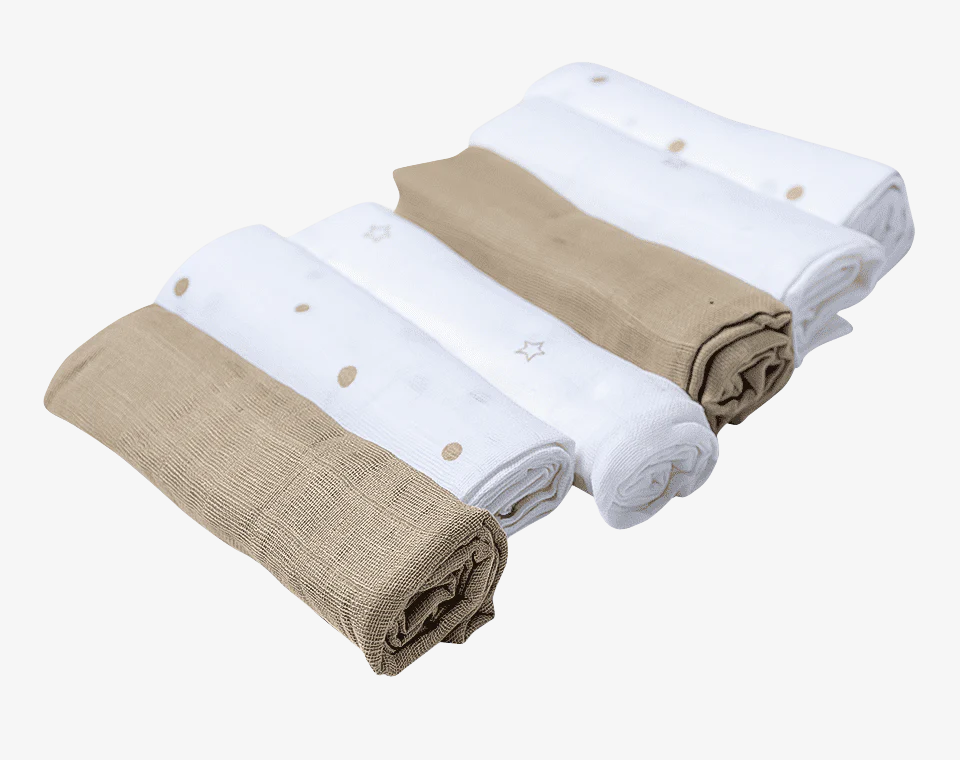 שישיית חיתולי טטרא מודפס- לבן קפה
