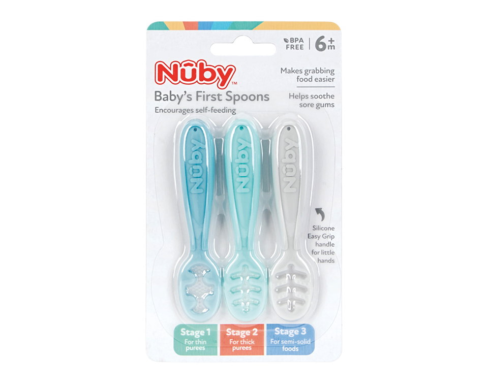 שלישיית כפיות המעודדות האכלה עצמית קלה, בעלות ידיות סיליקון לאחיזה נוחה של התינוק, מושלמות לירקות מרוסקים ולמזונות חצי מוצקים, אוספות בקלות דייסה ואוכל תינוקות סמיך יותר.
