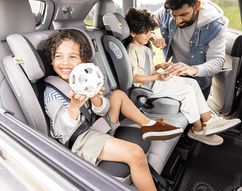 משמש ככיסא עם רתמות עד גיל 4, ואז עובר לבוסטר גב עד 150 ס"מ – פתרון נוח ובטוח לשנים קדימה.