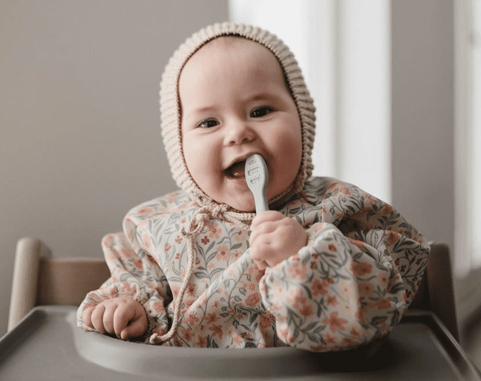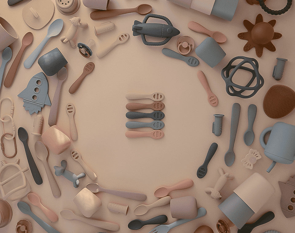 הכפיות הראשונות של Mushie עוצבו במיוחד ללמידת אכילה עצמאית בשלבים. הכפית הסגורה מתאימה למרקמים חלקים כמו מחית ויוגורט, ואילו הכפית המחוררת מאפשרת לתינוק להתמודד עם מזונות מעט סמיכים יותר.