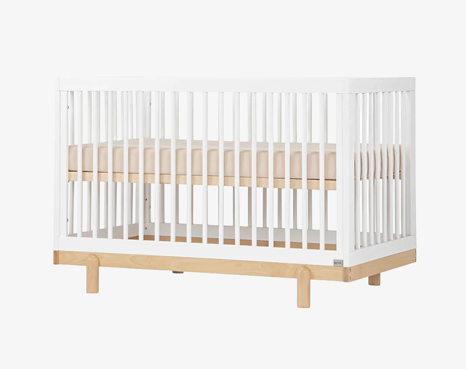 חדר תינוקות מבית סגל, כולל מיטת תינוק מדגם "רוז" ושידת אחסנה "שלומית" בצבע לבן-טבעי.