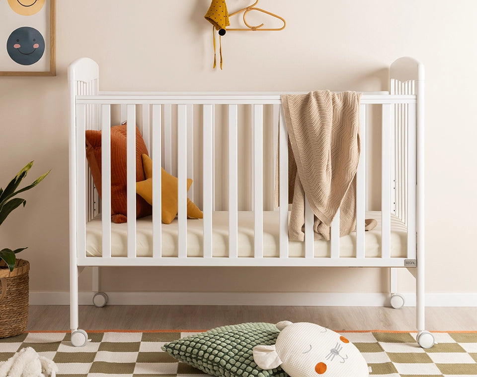 מיטת לוצ'יה מבית רהיטי סגל - מיטת תינוק בעיצוב קלאסי ונקי, עשויה עץ בוק מלא, בטיחותית ומותאמת לסטנדרטים בינלאומיים.