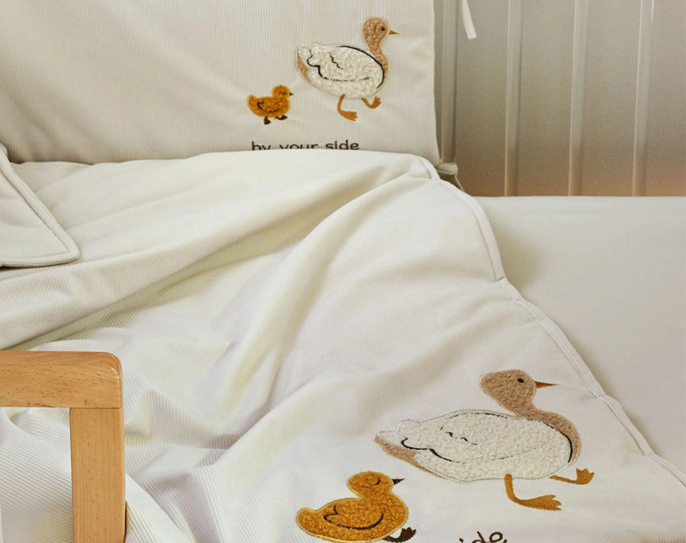 סט מצעים לעריסה עם נחשוש קלוע קורדורוי Little chick