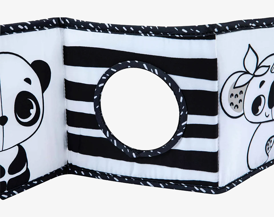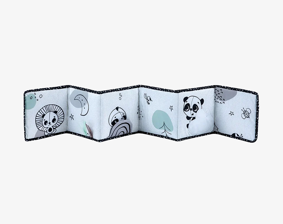 הספר מציע לתינוקות גירוי חזותי חיוני כבר מהיום הראשון, ומסייע בפיתוח הראייה. בצידו השני - סצנות מרגיעות בצבעים רכים ודמויות חמודות, המותאמות להנאתם של תינוקות גדולים יותר. הספר קל לקיפול ונוח לנשיאה, כך שתוכלו לקחת אותו לכל מקום - ולשלב הנאה והתפתחות גם מחוץ לבית.
