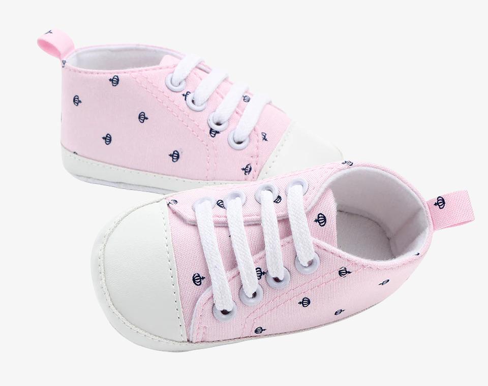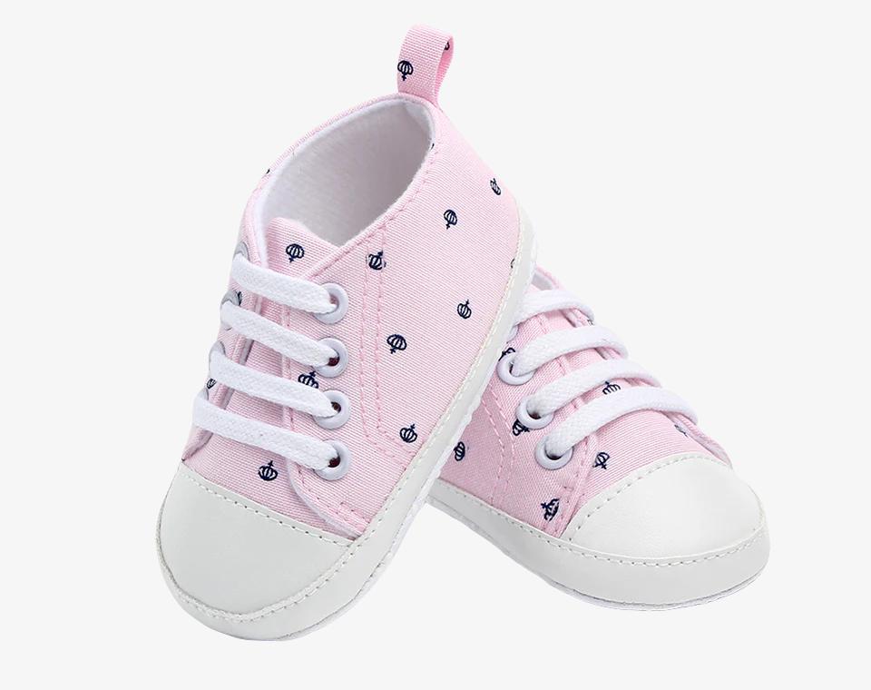 נעלי טרום הליכה ורודות לבנות של BOOBEE. מידה 3-6 חודשים